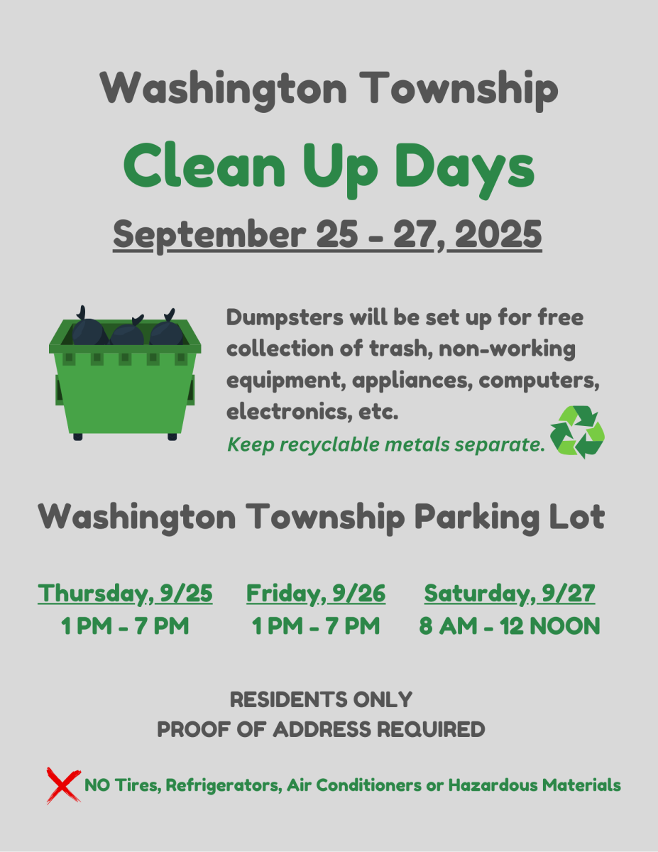 Dumpsters will be set up for free collection of trash, non-working equipment, appliances, computers, electronics, etc.