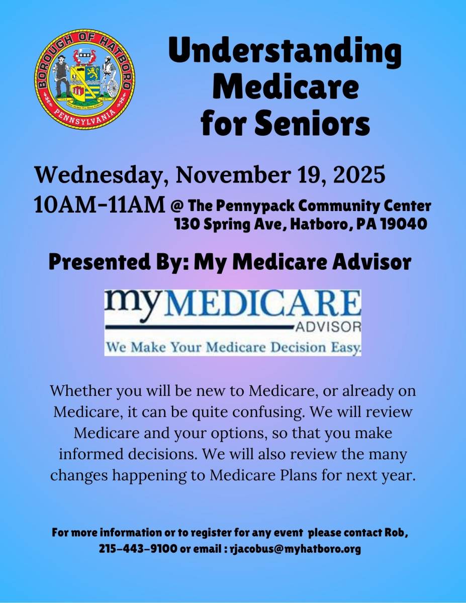To register, please call Borough Hall at 215-443-9100.