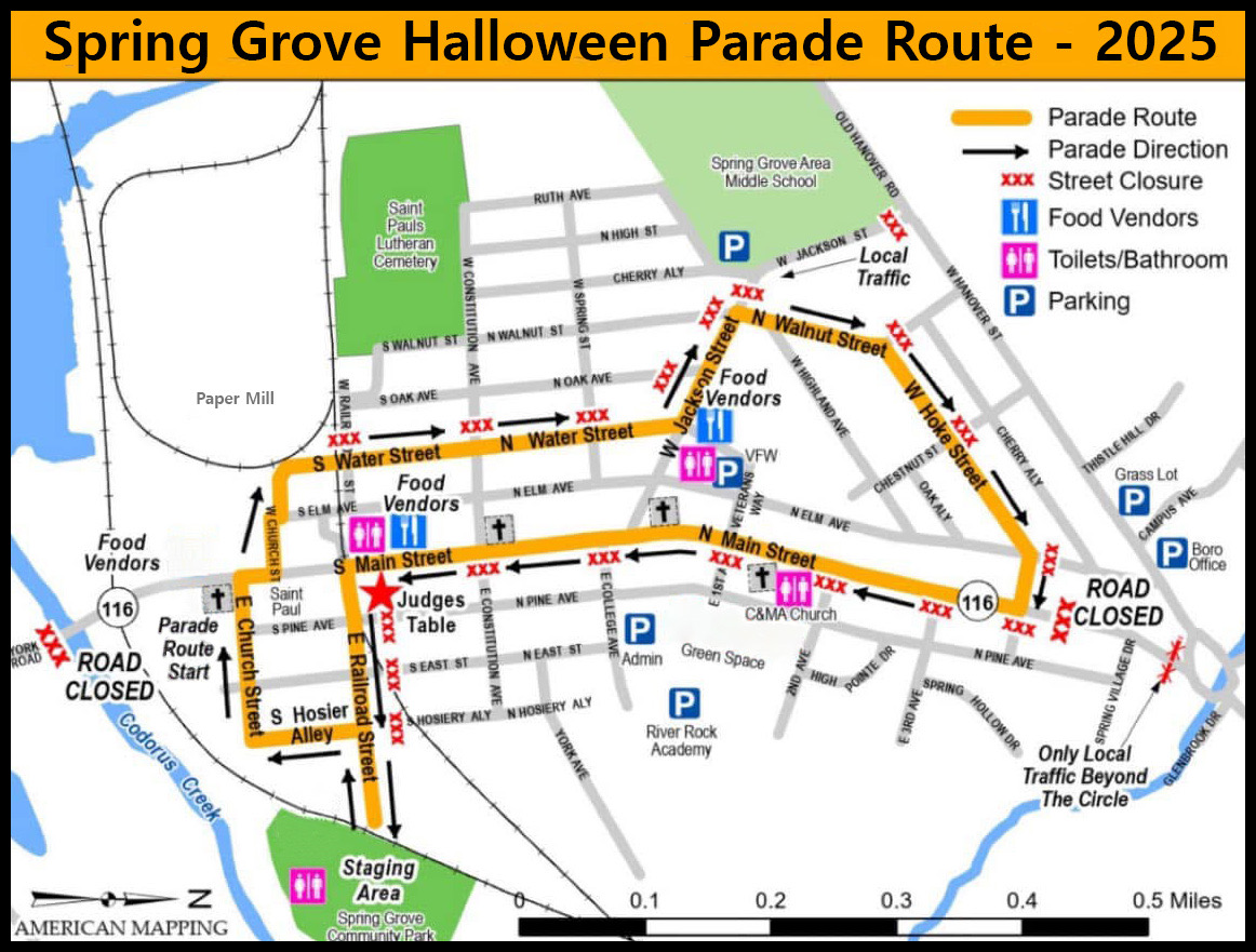 In preparation for this year's parade, we would like to communicate the parade route and road closures in advance to allow residents time to plan. The parade will be held on Wednesday, October 22nd, at 7:00pm. The parade is rain or shine this year.
