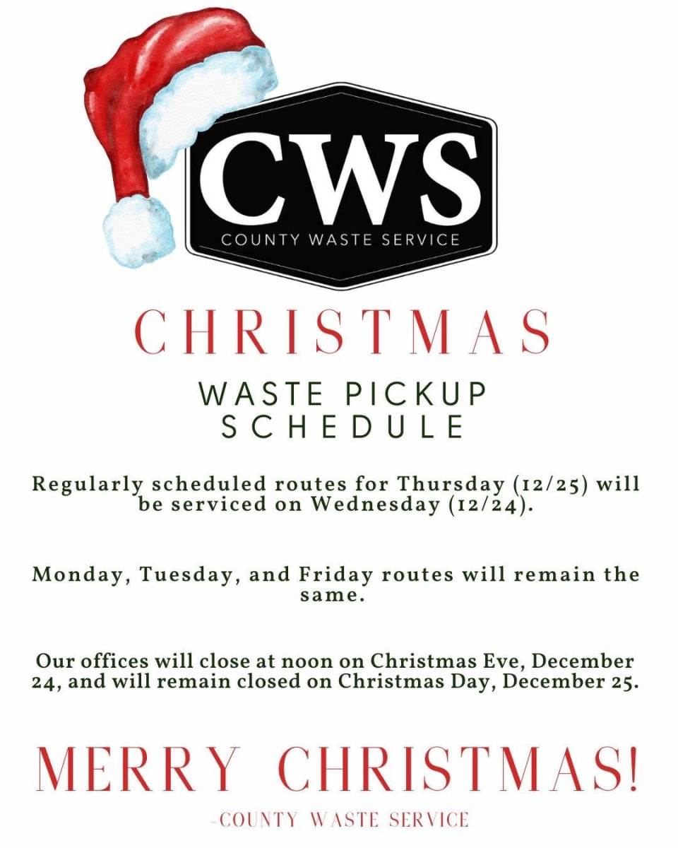 CWS will be picking up trash in the city limits on Wednesday 12/24.
