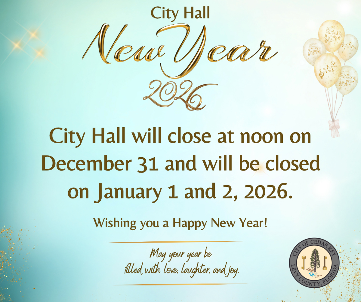 City Hall will close at noon on December 31 and will remain closed on January 1 and 2, 2026.