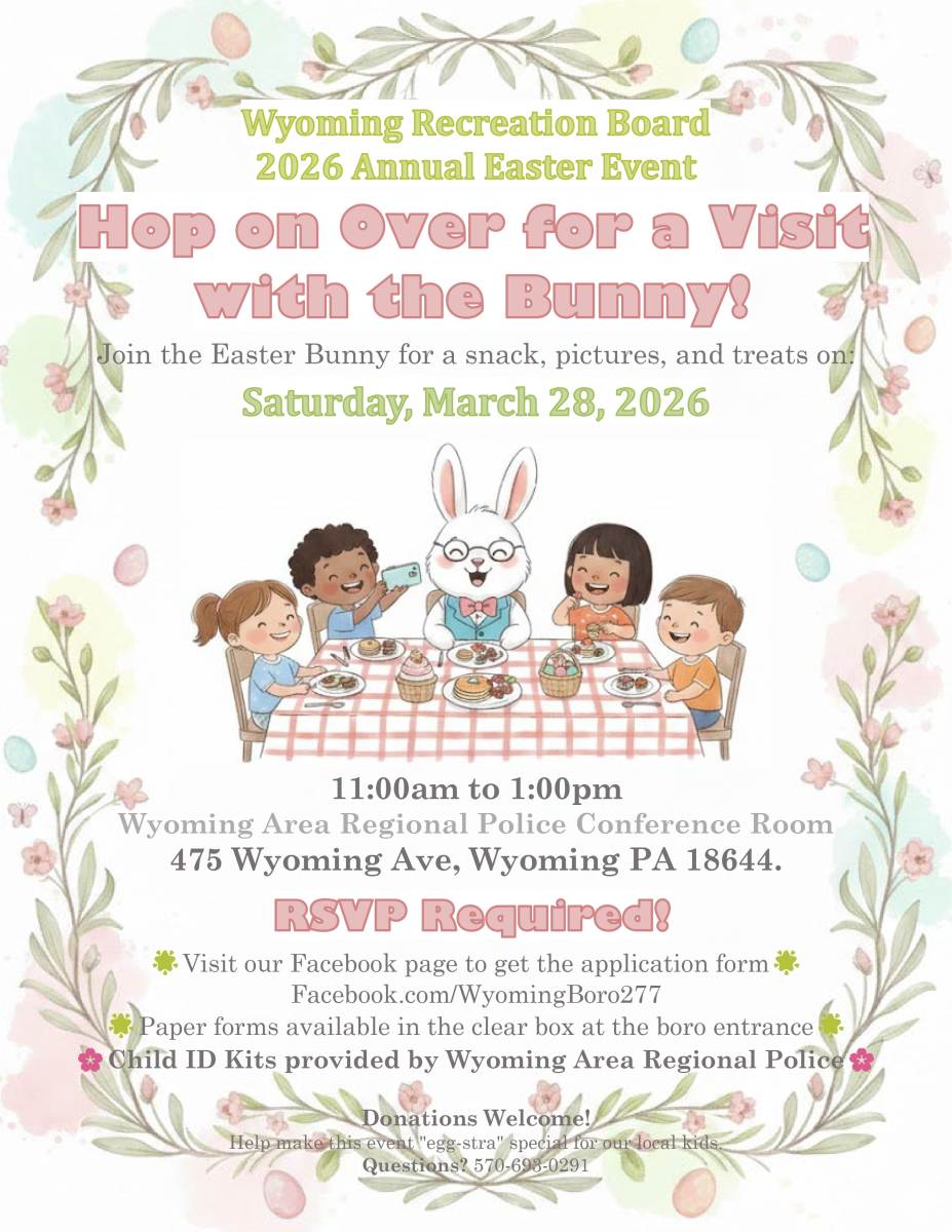 - Tue, Feb 17 @ 1:18pm - The event's description was changed. Message from Wyoming Borough: RSVP Date by March 20, 2026