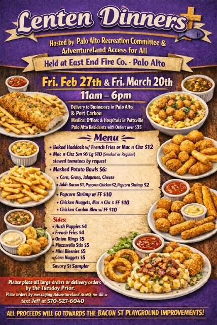 East End Fire Company, Palo Alto. 11am to 6pm or sell out! Pre Orders available! Proceeds benefit the Adventureland Access for All Addition in the Bacon Street Playground!