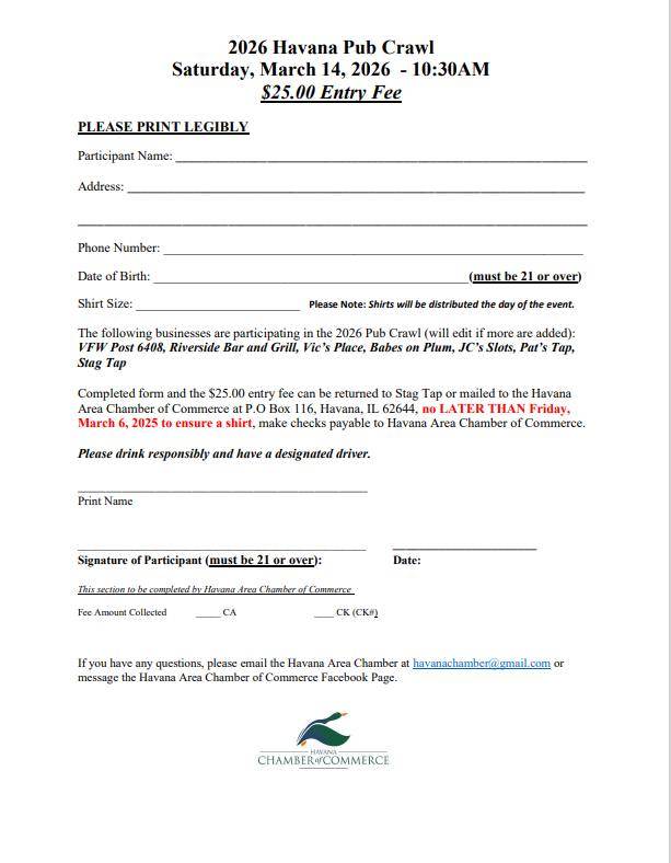 or message the Havana Area Chamber of Commerce Facebook page.