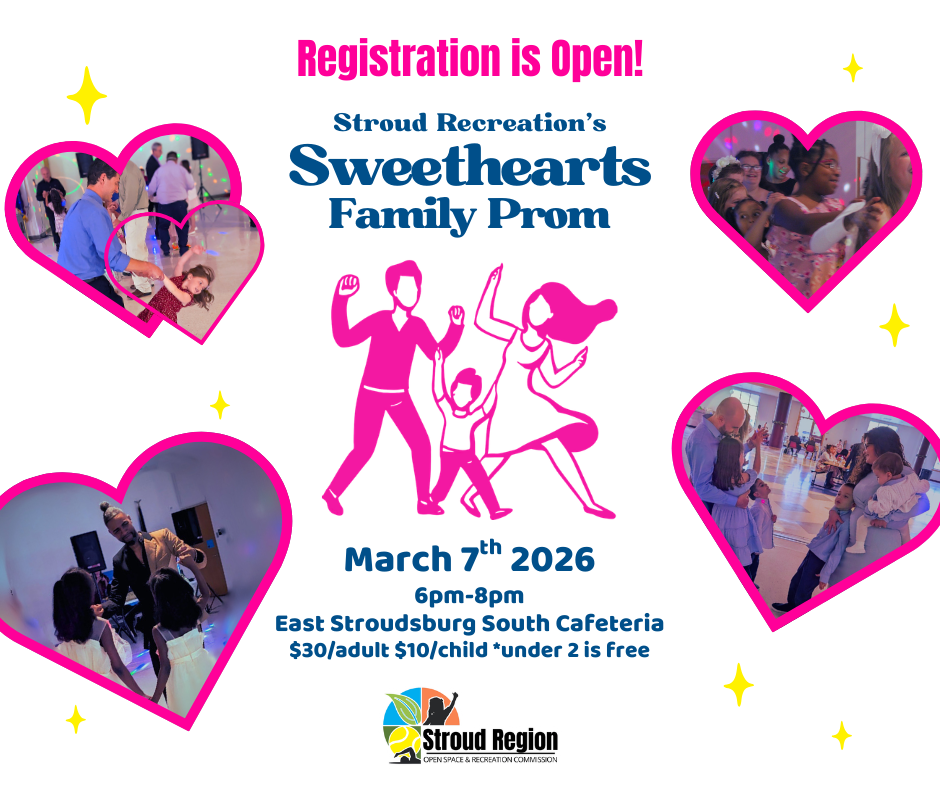Stroud Region Open Space & Recreation Commission’s mission is connecting the community with recreational programs, greenways, trails, parks, recreation amenities and natural areas throughout the Stroud Region. Stroud Recreation partners with Stroudsburg and East Stroudsburg boroughs, Stroud Township, Stroudsburg and East Stroudsburg school districts.