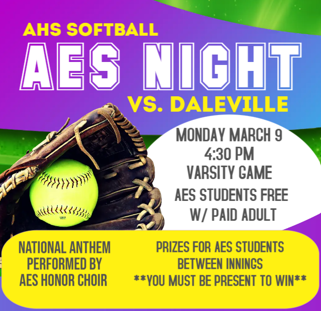 Varsity game only - All AES Students admitted free with a paid adult - AES Honor Choir performing the National Anthem - recognizing all youth clinic participants during pregame.