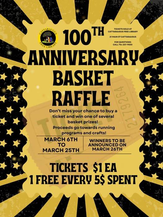 Join us for our 100th anniversary! The Cattaraugus Free Library has been providing library services to the village and town for 100 years!