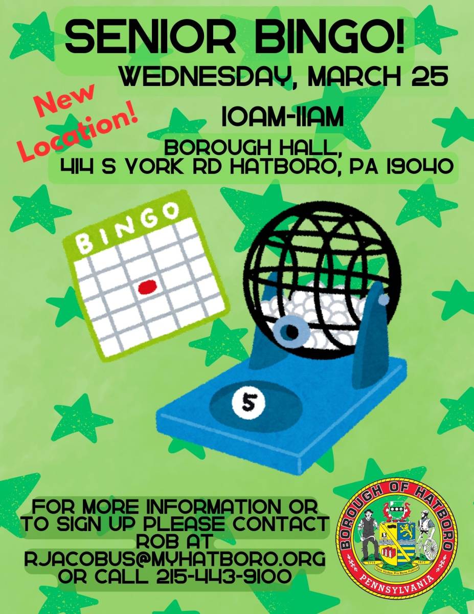 To Register please contact Rob at Borough Hall, 215-443-9100 or email rjacobus@myhatboro.org.