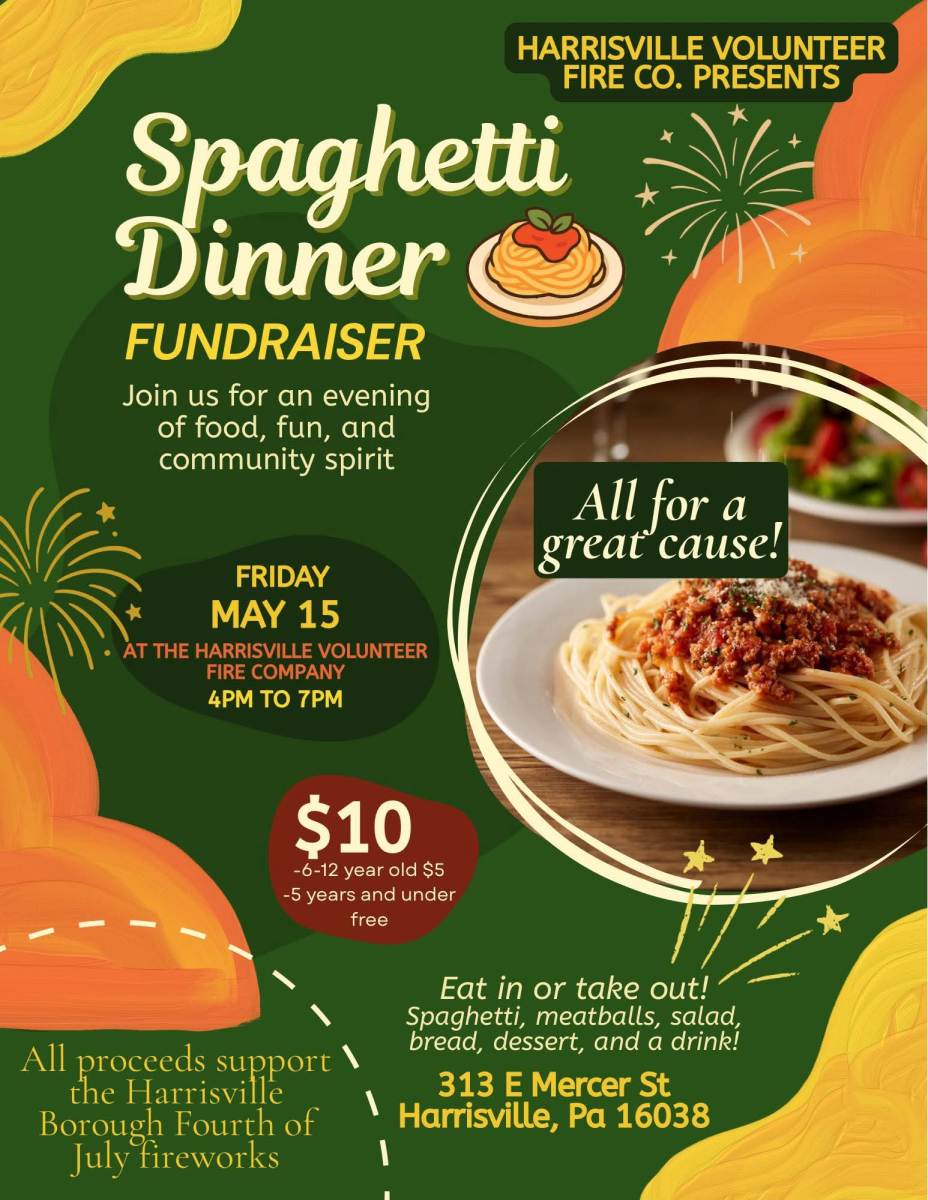 Youβre invited to join us for a Spaghetti Dinner Fundraiser benefiting the Harrisville Borough Fourth of July Fireworks! π