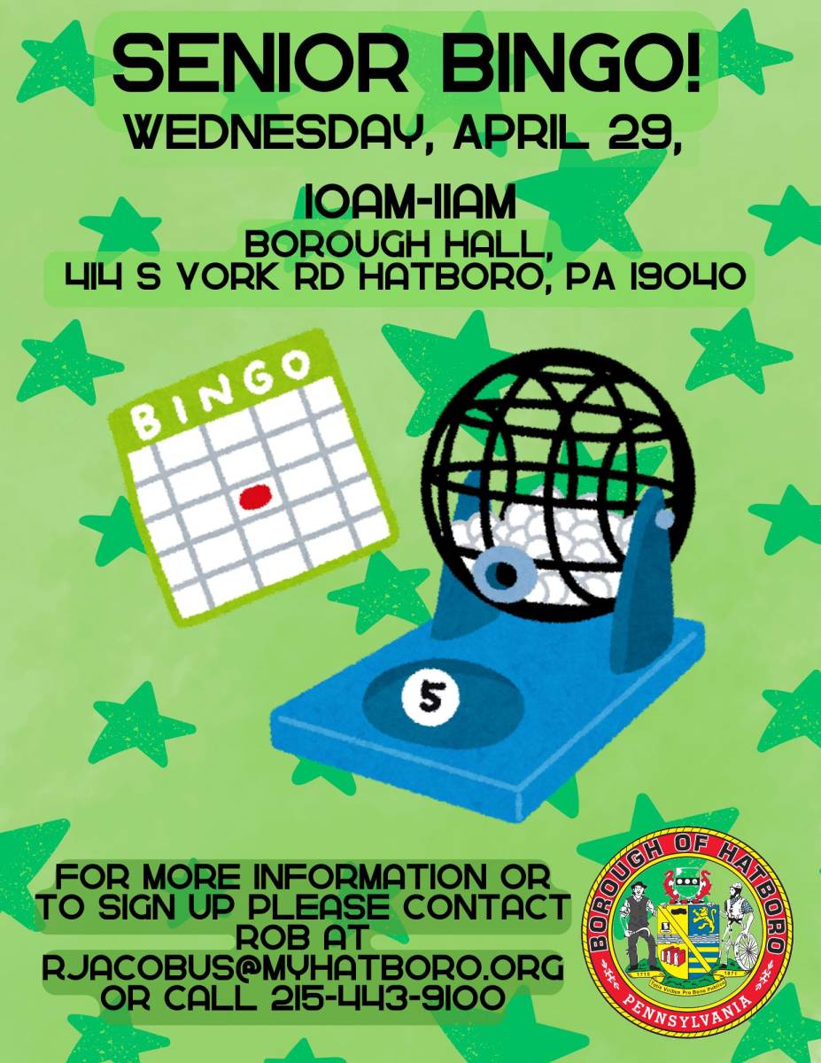 To Register please contact Rob at Borough Hall, 215-443-9100 or email rjacobus@myhatboro.org.