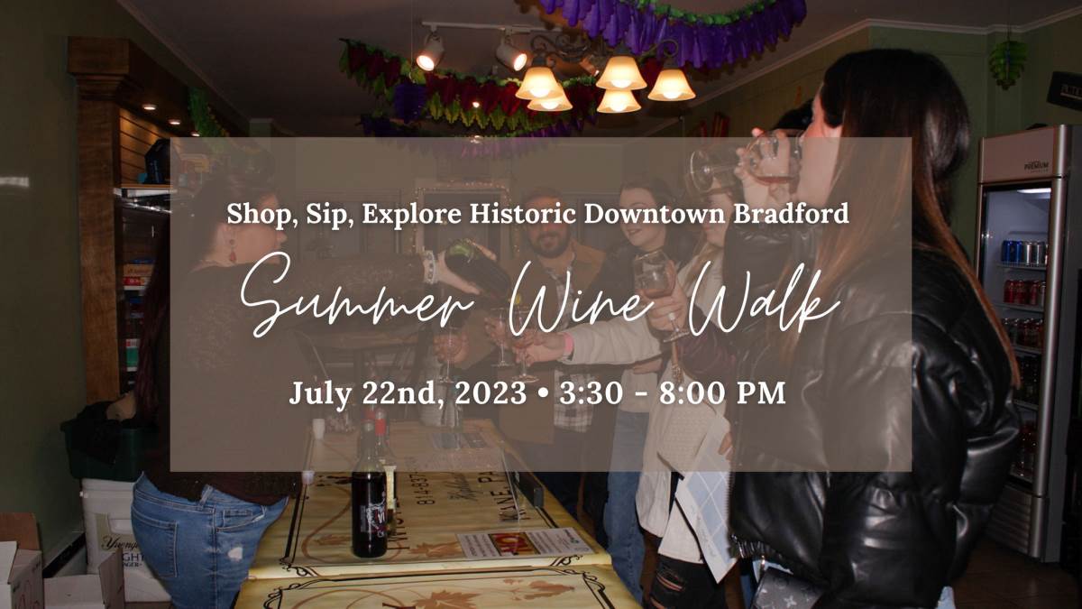 Shop, sip, and stroll through Historic Downtown Bradford! 12 PA wineries set up shop for the night in 12 of our unique businesses. Wine will be available for purchase and we offer a free porter service that includes store merchandise.