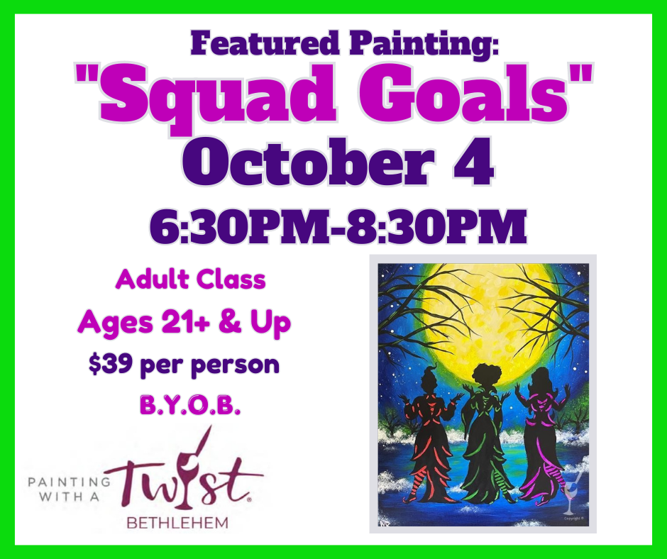 Come spend a night with friends or family and paint a masterpiece to take home! These classes will be at the Fork Township Community Center and conducted by Painting with a Twist in Bethlehem. All supplies will be provided for you, just bring your friends or family and be ready to have a great time! This is a BYOB event.