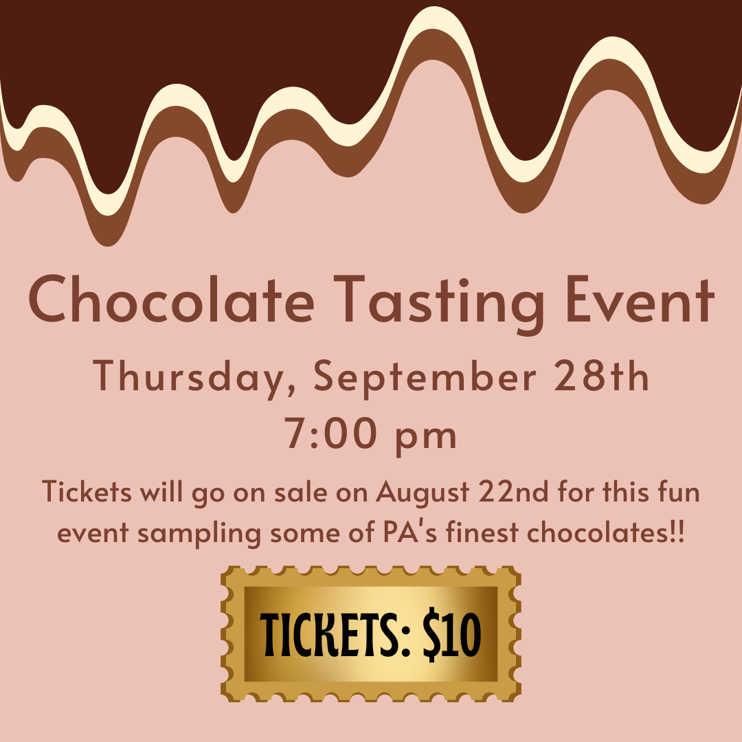 Buy your ticket for this great (and delicious) fundraiser at the library! Sample bits of chocolates from tons of local chocolatiers for just $10. Contact the library to purchase your ticket.