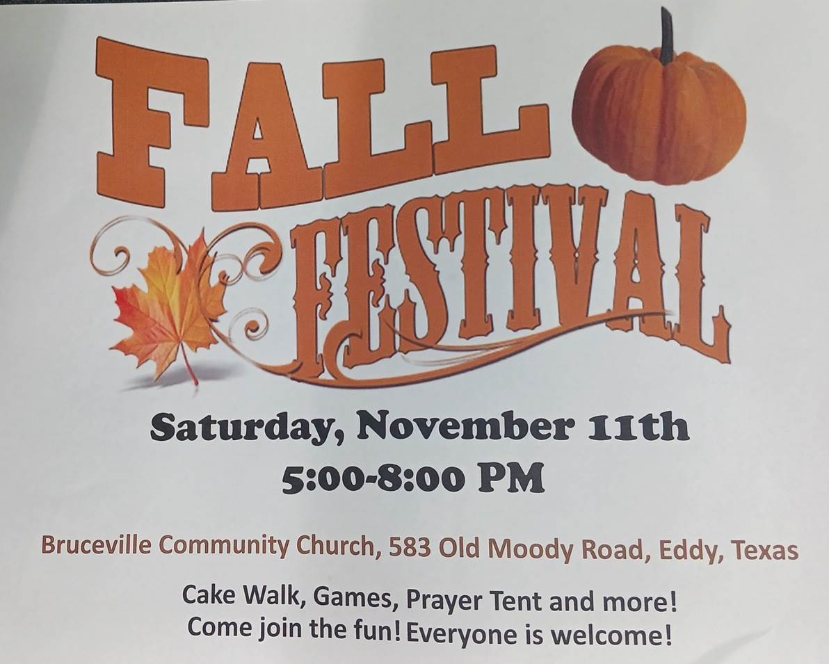 Come celebrate the season with Bruceville Community Church's Fall Festival taking place November 11th, 2023 from 5-8 p.m.
