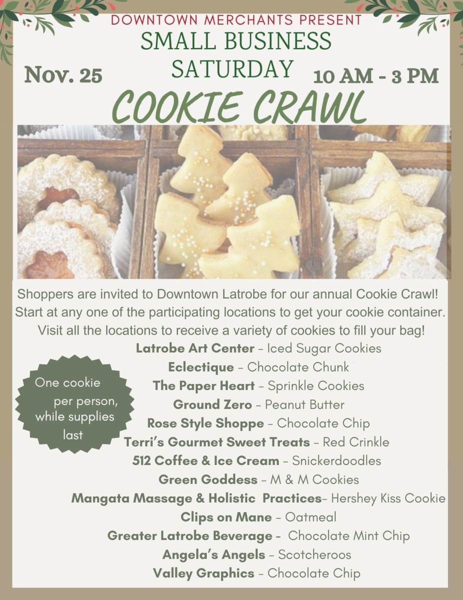 Downtown Latrobe Small Business Saturday annual cookie crawl 10 a.m. to 3 p.m.
