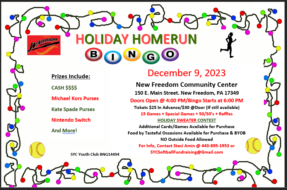 December 9, 2023 - Doors Open at 4:00PM - Bingo at 6:00PM