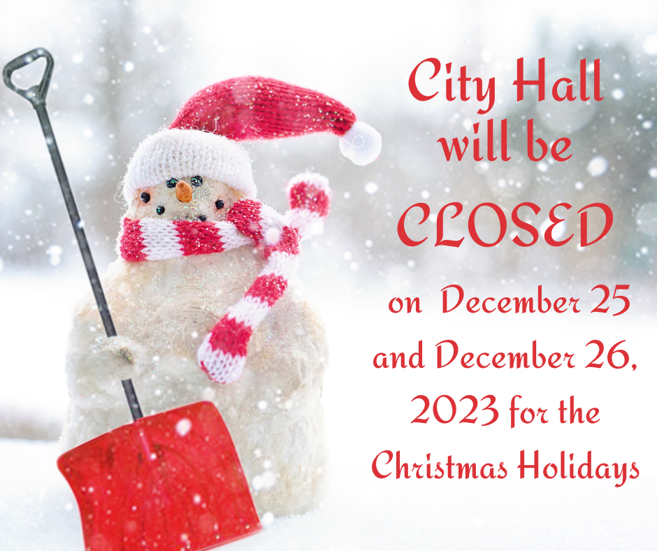 City Hall will be CLOSED December 25 & 26, 2023