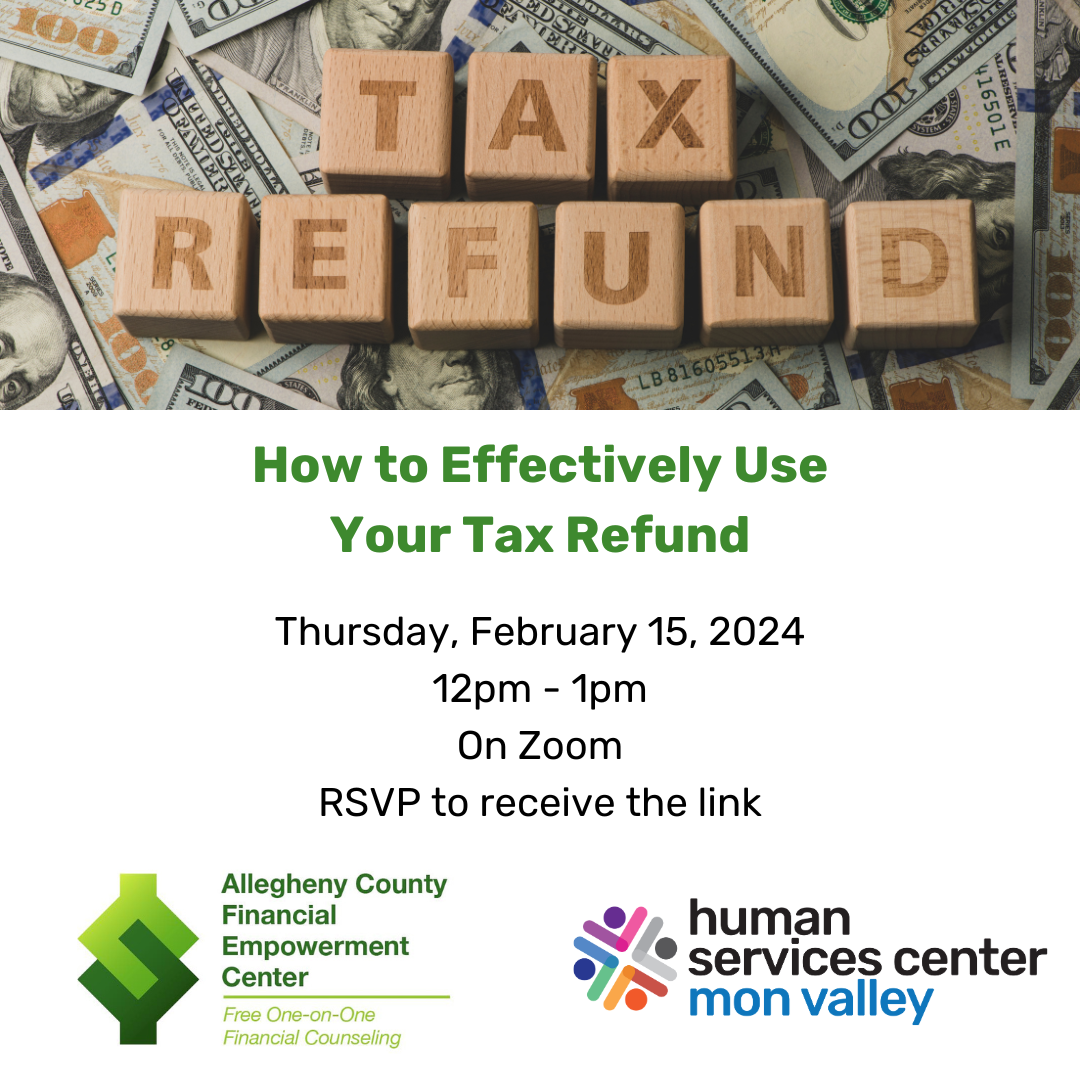 Join HSCMV and the Allegheny County Financial Empowerment Center to learn how to effectively use your tax refund to set yourself up for success the rest of the year.