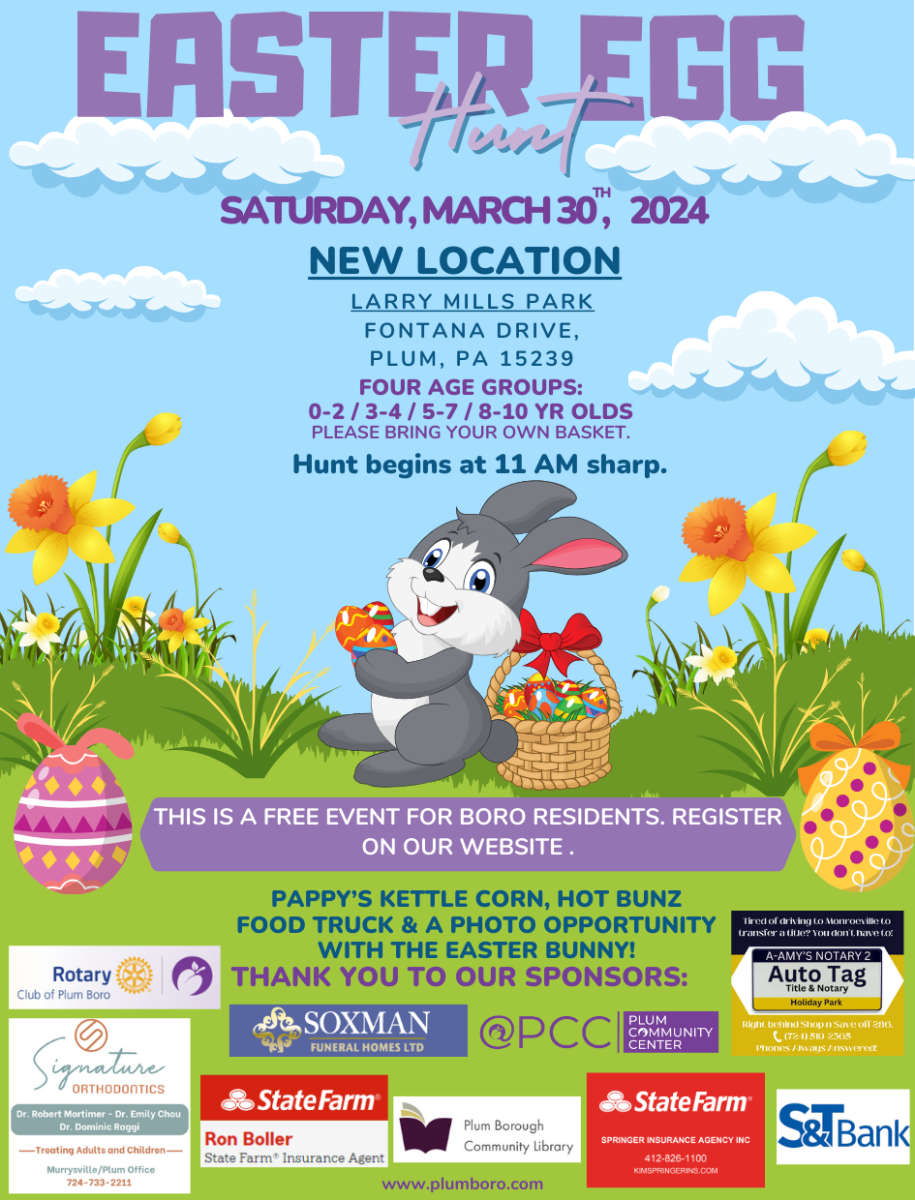 Thank you to our sponsors: Rotary club of Plum Boro, Signature Orthodontics, Soxman Funeral Homes LTD, Plum Community Center, State Farm-Ron Boller, Plum Borough Community Library, S&T BANK, State Farm-Kim Springer & A-Amy's Auto Tag Title & Notary 2.