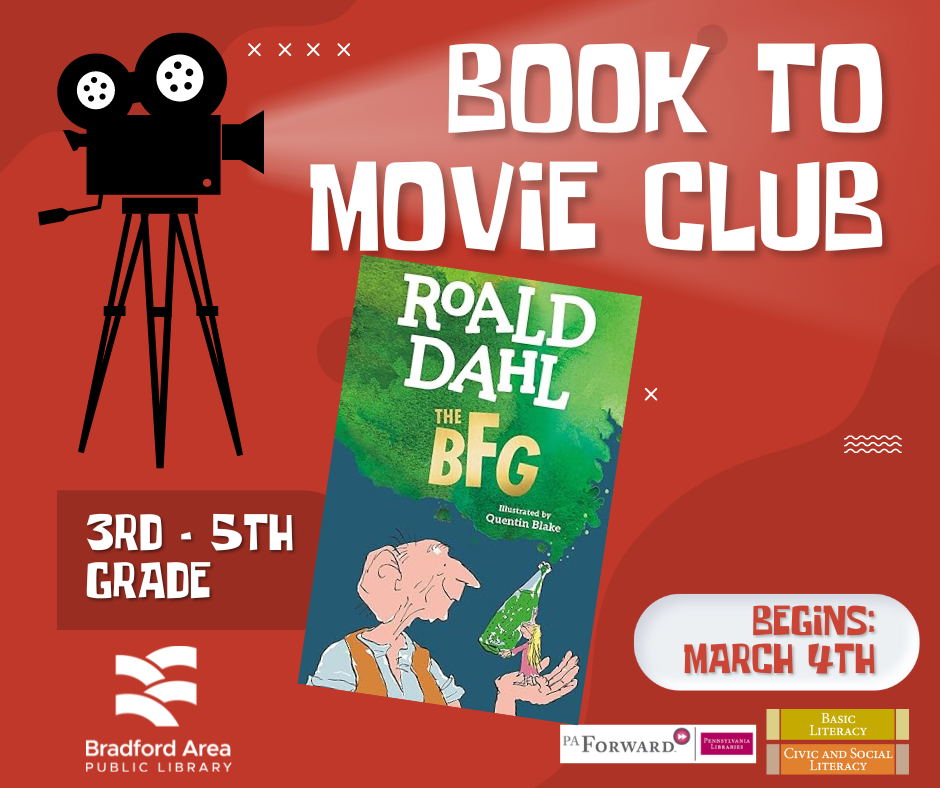 Join an awesome club! Local students in grades 3 - 5, are welcome to attend every Monday from 5- 5:45 PM while we read a few chapters from a great children’s book. Once the book is finished, we will watch the movie!