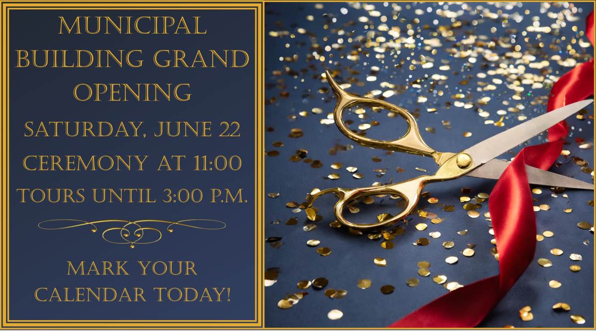 The Grand Opening Ceremony for the new Municipal Building will be held on June 22 at 11:00 am. Following the ceremony, tours of the building will be available until 3:00 p.m. Please plan to join us and celebrate this momentous occasion for North Franklin!