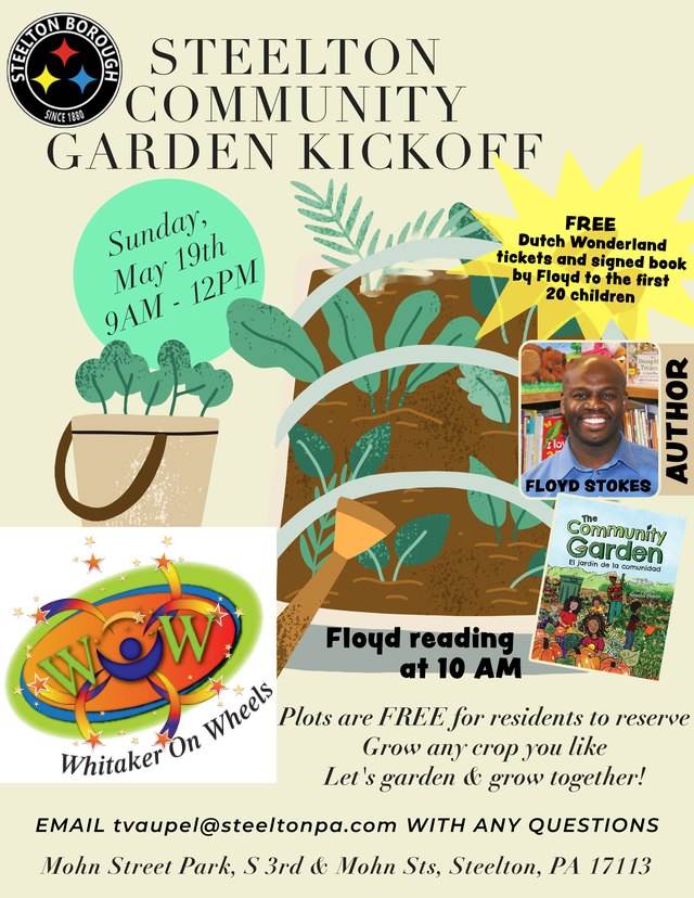 Be sure to bring the family too! Local children’s author Floyd Stokes will be holding a reading of his book, The Community Garden, at 10:00 AM. He will be giving away FREE Dutch Wonderland tickets and copies of his book to the first 20 children in attendance, so be sure to arrive early. Kids can also enjoy Whitaker on Wheels, the mobile STEAM activity truck from the Whitaker Center. They will be attending to provide custom garden stations for the children.