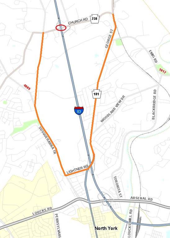 Harrisburg, PA – The Pennsylvania Department of Transportation (PennDOT) announced today that the Route 238 (Church Road) bridge spanning Interstate 83 north of York in Manchester Township, York County, is scheduled to be closed the weekend of June 21-24 for bridge maintenance work. A contractor will perform asphalt paving on the bridge.