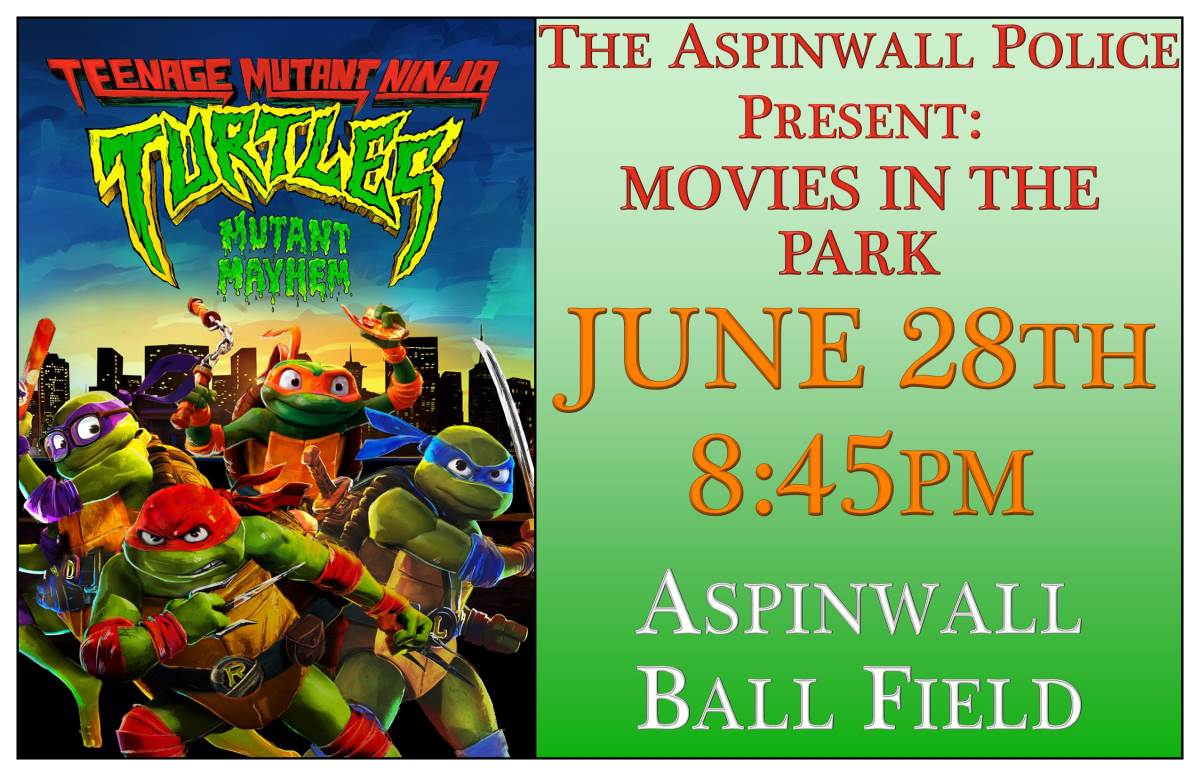 The Aspinwall Police and Mayor Noro are hosting a movie in the park. Bring your chairs and blankets.