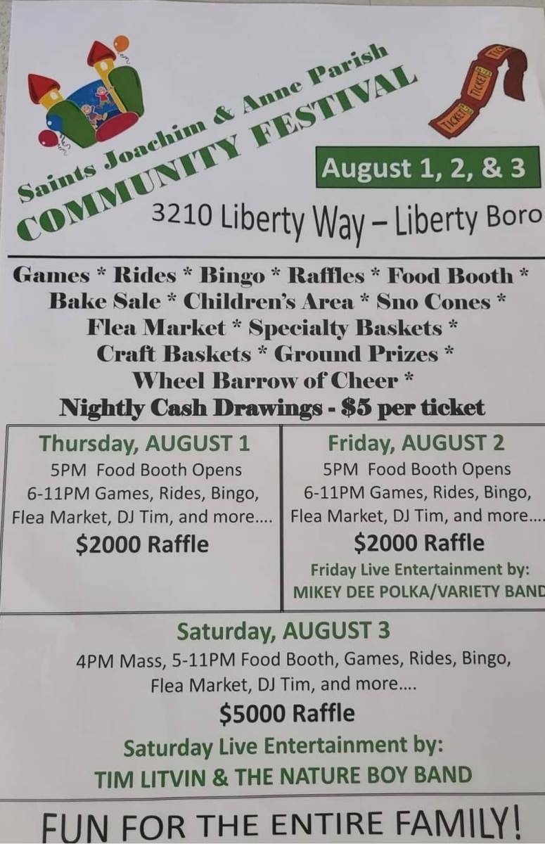ST JOACHIM & ANNE (FORMERLY ST MARKS) FESTIVAL COME ON OUT AN SUPPORT THE CHURCH AND HAVE SOME FUN!