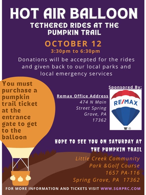We will have hot air balloon rides at the Pumpkin Trail. Please see attached flier.