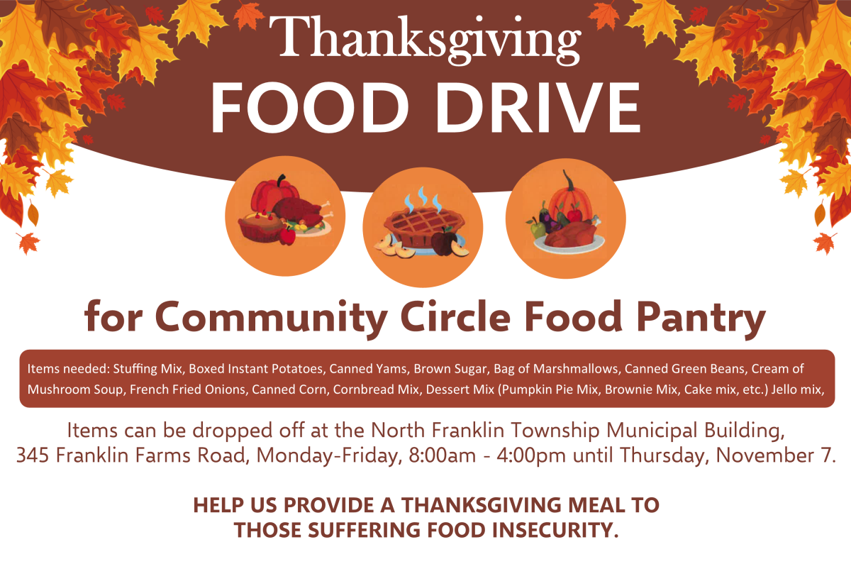 Help provide a Thanksgiving meal to those suffering food insecurity by donating to the Community Circle Food Pantry Thanksgiving Food Drive. Items will be collected at the NFT Municipal Building, 345 Franklin Farms Road, Monday-Friday, 8am-4pm, until Thursday November 7. See attachment for list of needed items.