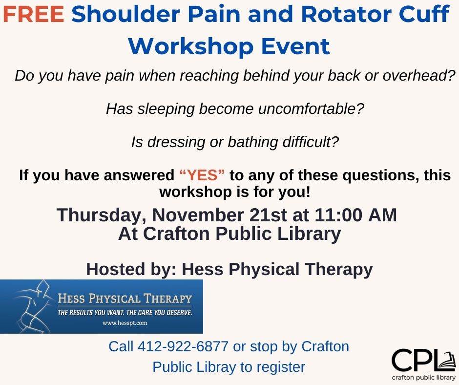 Crafton Public Library-FREE Shoulder Pain Workshop presented by Hess Physical Therapy