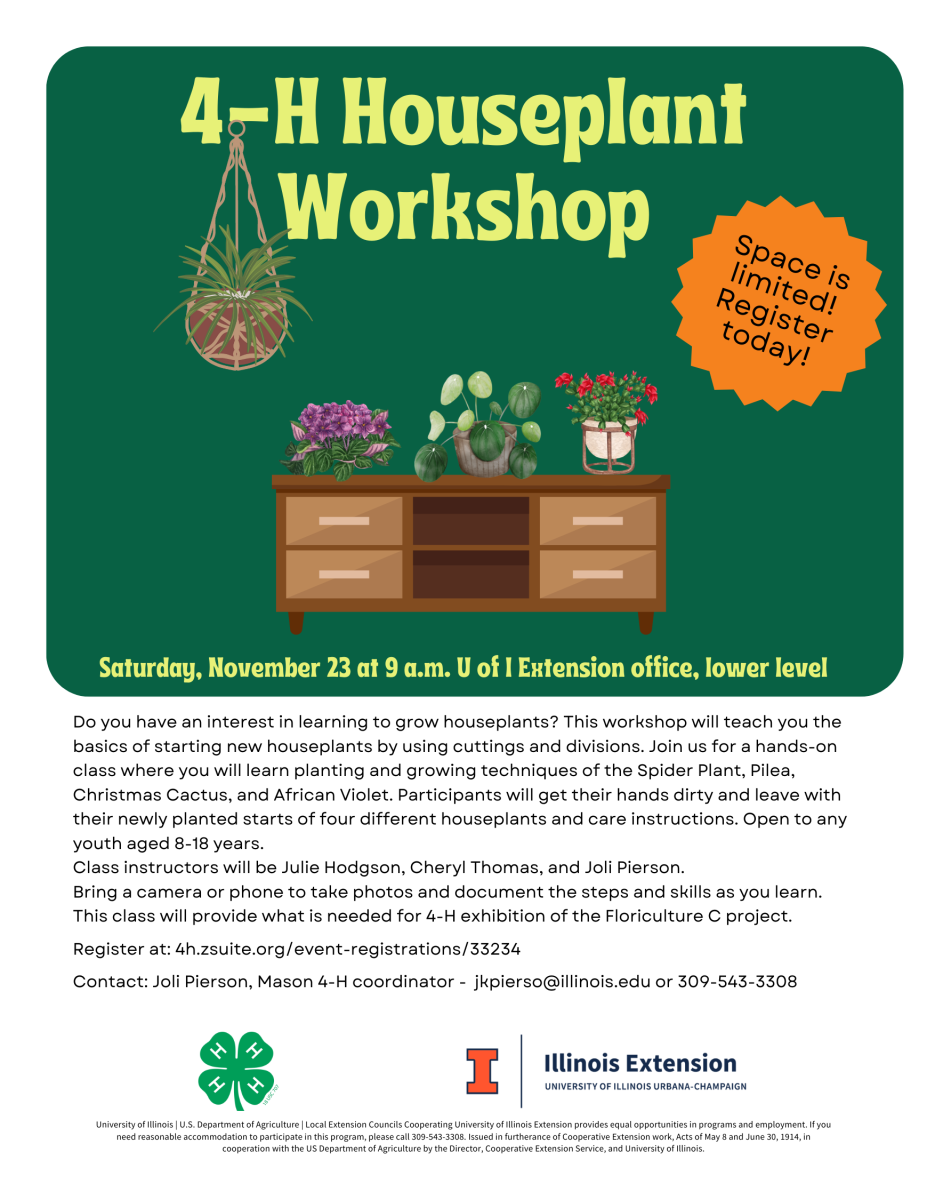 Learn to grow houseplants. This workshop will teach you the basics of starting new houseplants by using cuttings and divisions. Join us for a hands-on class where you will learn planting and growing techniques. Open to any youth aged 8 - 18 years.