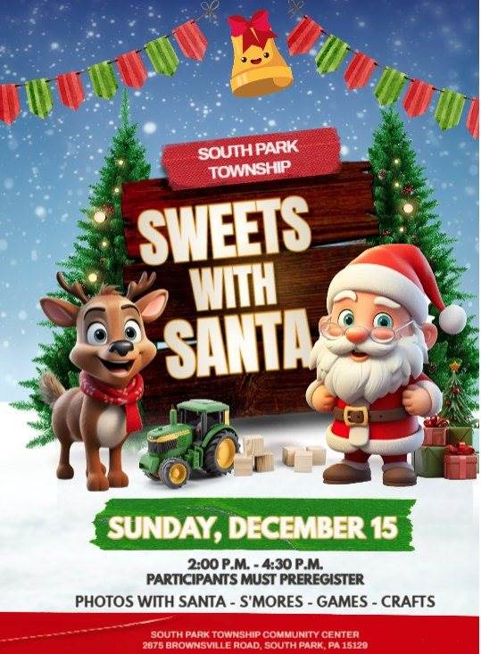 The Township's "S'mores with Santa" event will be held on Sunday, December 15th from 2:00 p.m. to 4:30 p.m. at the Township Community Center. Join Santa for outdoor photos in his antique sled. Then, make s'mores, play games, and take home a craft.