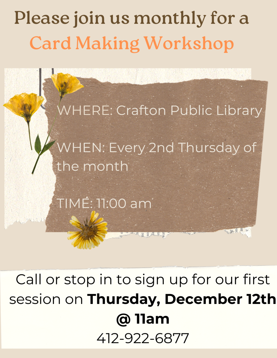 Call or stop in Crafton Public Library to sign up: