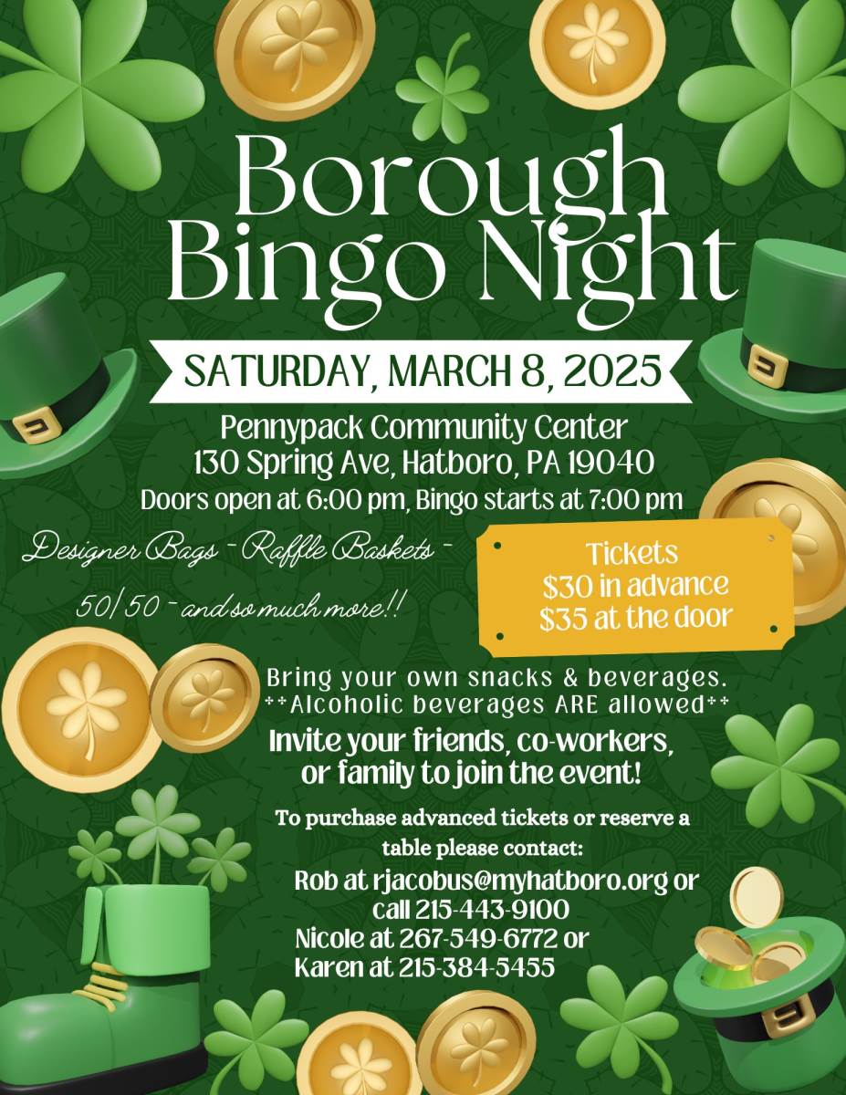 To Purchase advanced tickets or reserve a table please contact: Nicole at 267-549-9100, Karen at 215-384-5455, or Rob at rjacobus@myhatboro.org or call 215-443-9100.