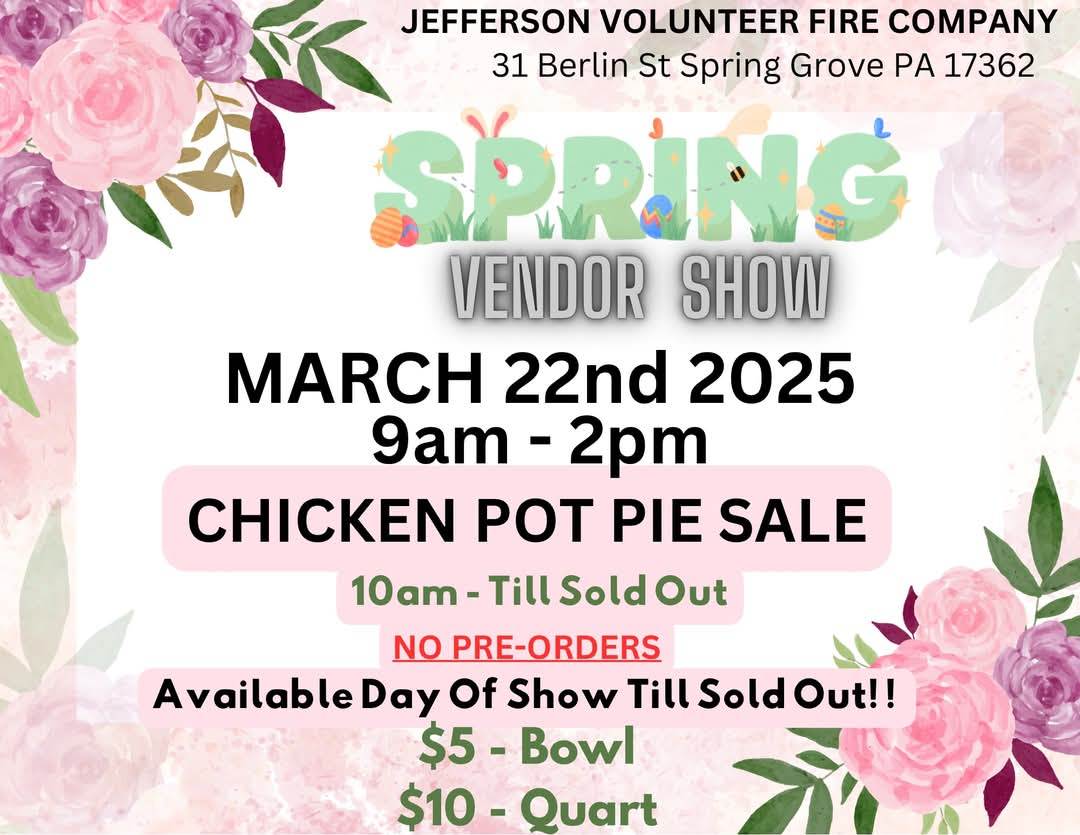 Jefferson Fire Company Spring Vendor Show & Chicken Pot Pie Sale