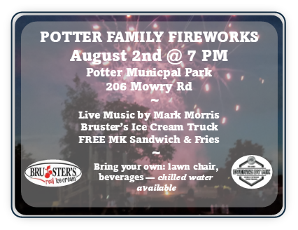 Join us for Potter's own fireworks festival on Saturday, August 2nd at the Municipal Park!