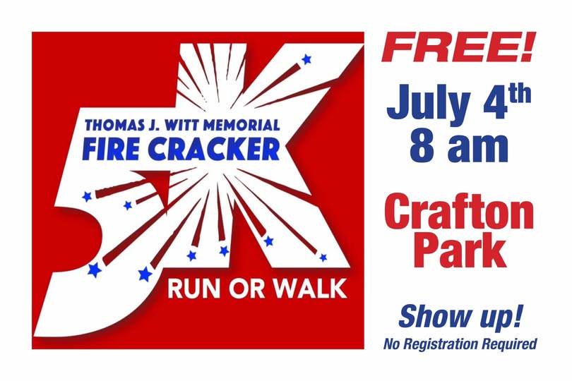 Get your 4th of July off to a running start! Join friends and neighbors at Crafton Park for the annual Thomas J. Witt Memorial Firecracker 5K. The race is free and open to runners and walkers of all ages. If your kids are small, bring your stroller or wagon and enjoy the historic streets and unique homes along the way. The route follows the traditional 5K course with directional signs posted to keep you on track. If you’re not a runner or a walker, set up a chair along the course and give a shout-out to participants as they pass by. Or, come to the park and cheer on the finishers.